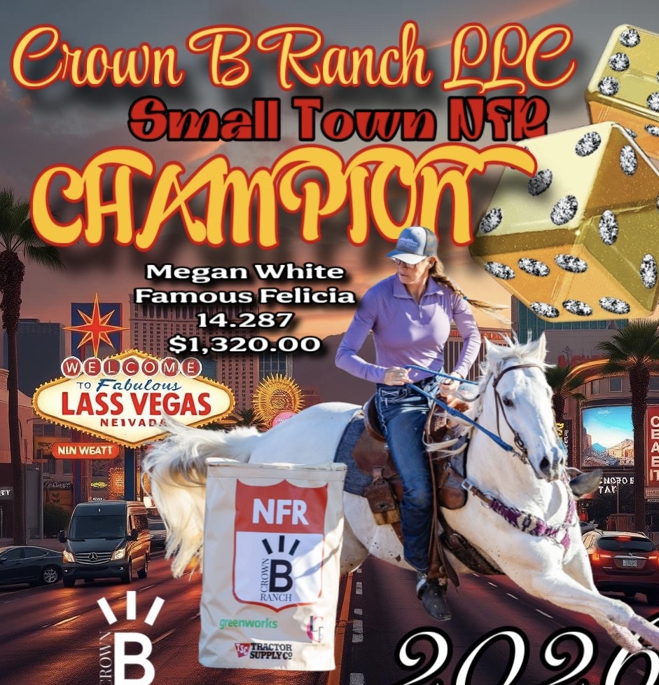 NFR Tribute Champion Megan White & Famous Felicica clear the field with a 14.287 and take home $1,320.00.