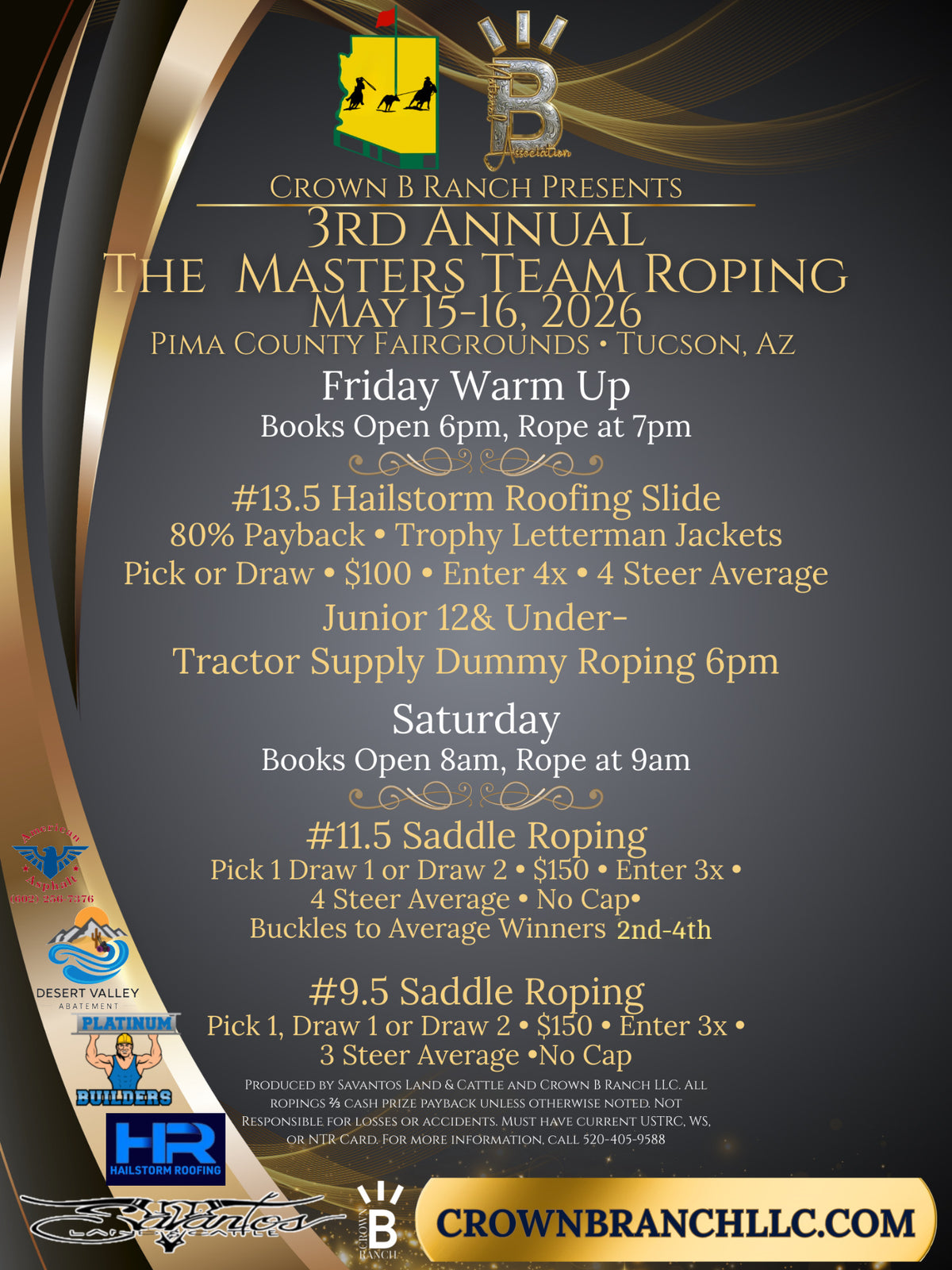 Savantos Land & Cattle x Crown B Bringing you a great weekend of roping!